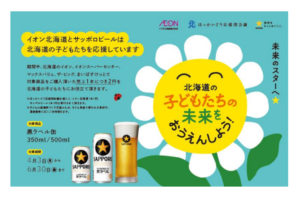 183店舗にて「サッポロ生ビール黒ラベル」の販売数量に応じ、1缶につきイオン北海道(株)より1円、サッポロビール(株)より1円の計2円を寄付するキャンペーンを実施しました。