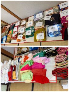 そして帯、刺繍襟、重ね衿、帯揚げ、帯締め、着付け担当のボランティアさんと一緒に、コーディネートを楽しみます。