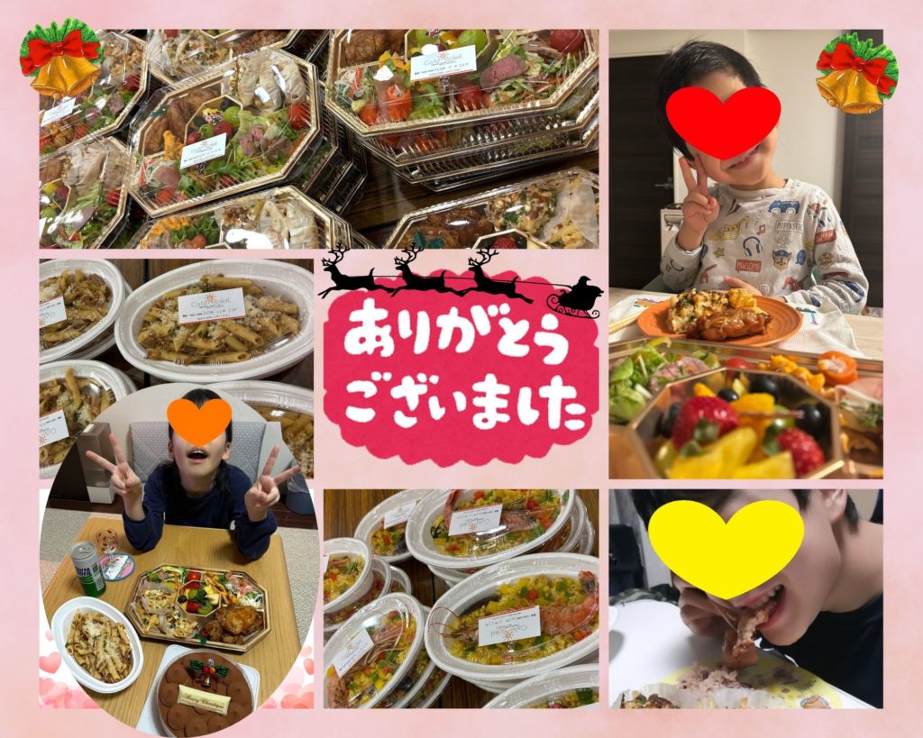 今年は父が認知症で入院し一緒に過ごすことはできませんが、母と私と娘の3人でささやかなクリスマス会を開くことができました。入院や転居や手続きに追われ、今年はクリスマスパーティーはできないと諦めていたところ、このようなご寄付をいただきました。オードブルは本当に美味しかったし、娘は好きな本がもらえたようで大変喜んでいました。