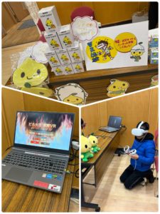 クリスマスのイベントですが、防災グッズとVRによるビル火災や地震の避難の体験コーナーも!