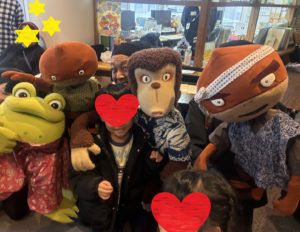 〇今日はやまびこ座でさるとかにの人形劇を拝見しました。猿がバイクで登場したり、途中途中思わず笑ってしまうと同時に、物語の意外性や途中で入る生演奏では物語の世界にぐっと引き込まれました。欲ばりやいじわるは、いつか自分に返ってくることや正直であることの大切さ、仲間と協力する力そんなことが子供たちに伝わったと思います。